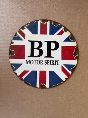Lot 31 - BP MOTOR SPIRIT ENAMEL SIGN 12" DIA